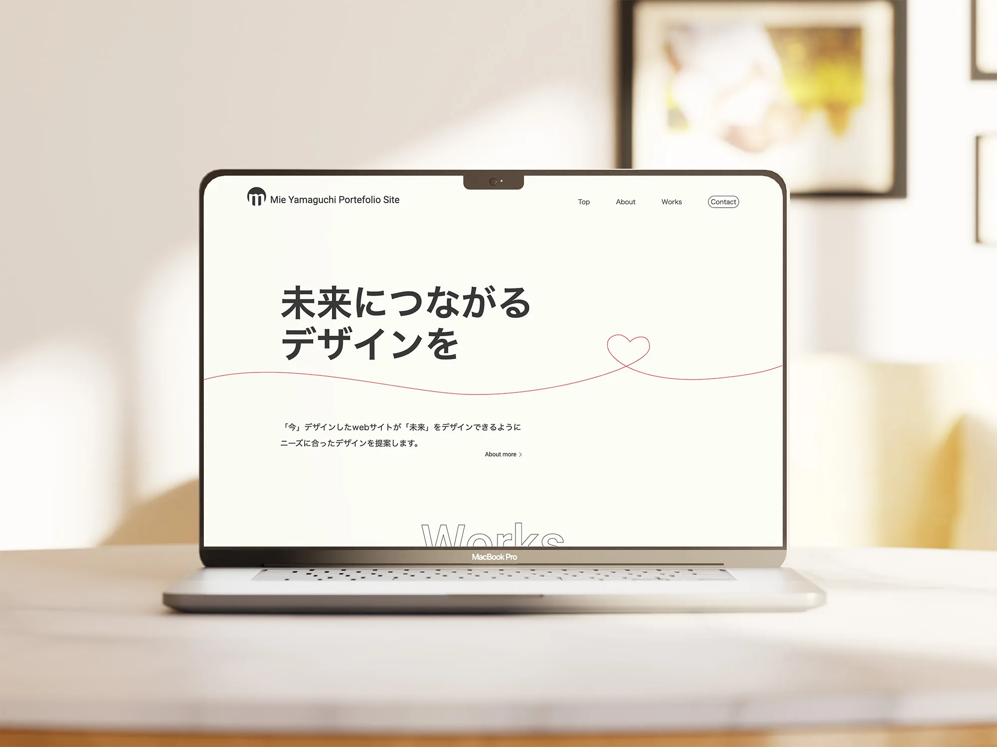 worksの作品がメインとなるので色味を抑え、尚且つ優しい印象になるように#FFFFFFと#000000をわずかに外した色を選んだ。